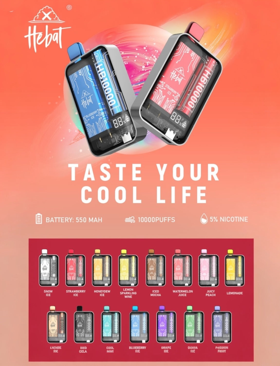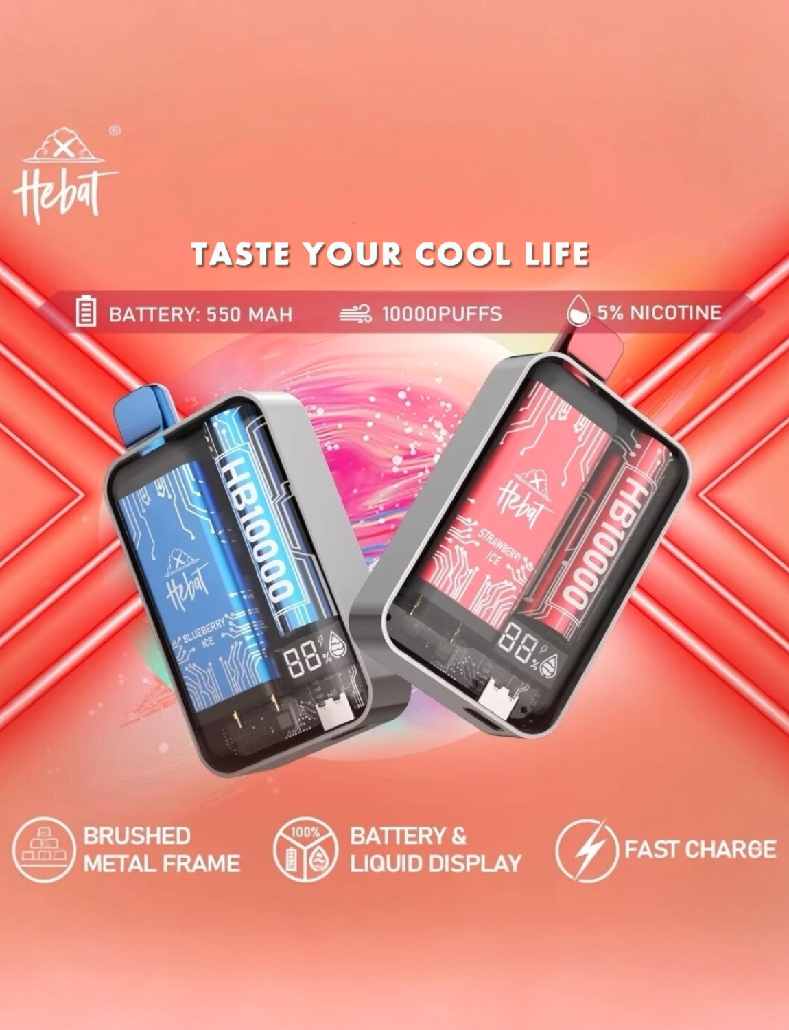 HEBAT 喜貝10000口一次性電子煙全新升級,採用超大容量設計,為電子煙愛好者提供持久且濃郁的吸煙體驗。擁有可重複充電功能,結合便利與高效,讓您隨時隨地享受純正口感。